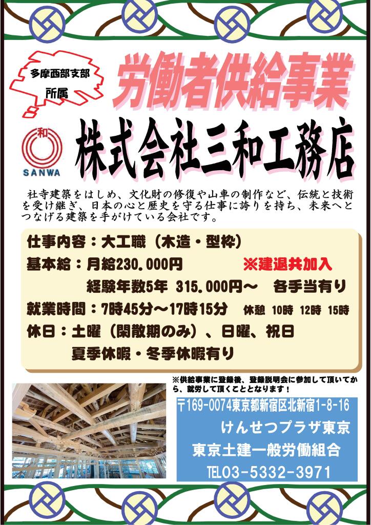 ⑧労働者供給事業 新規募集のお知らせ【(株)三和工務店】