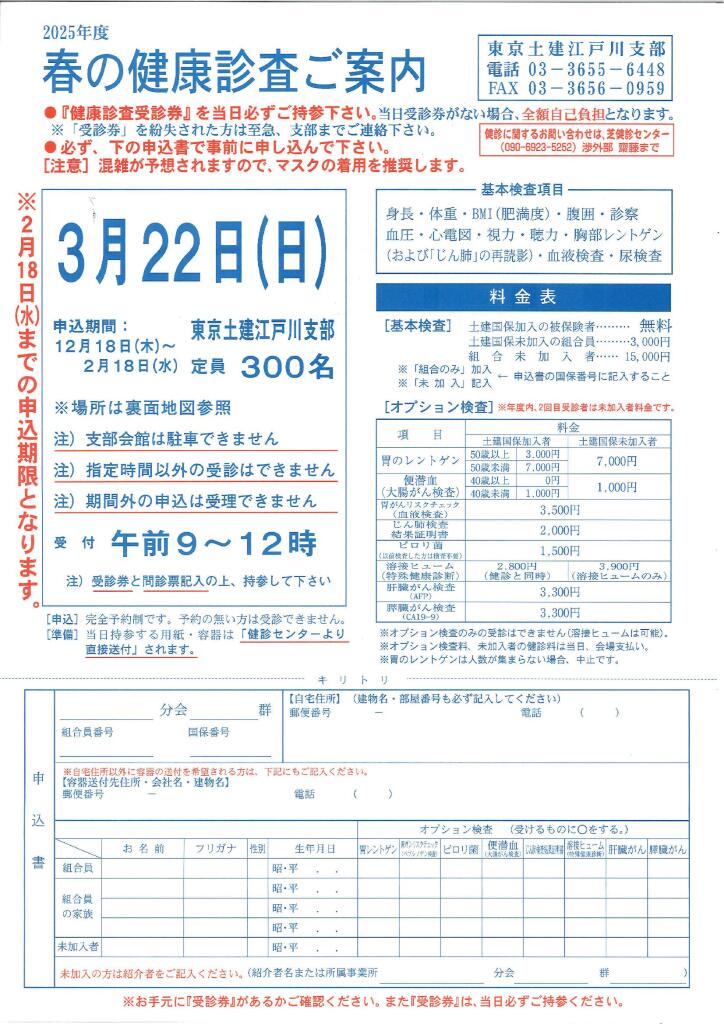 詳しくは江戸川支部 健診担当までご連絡ください。