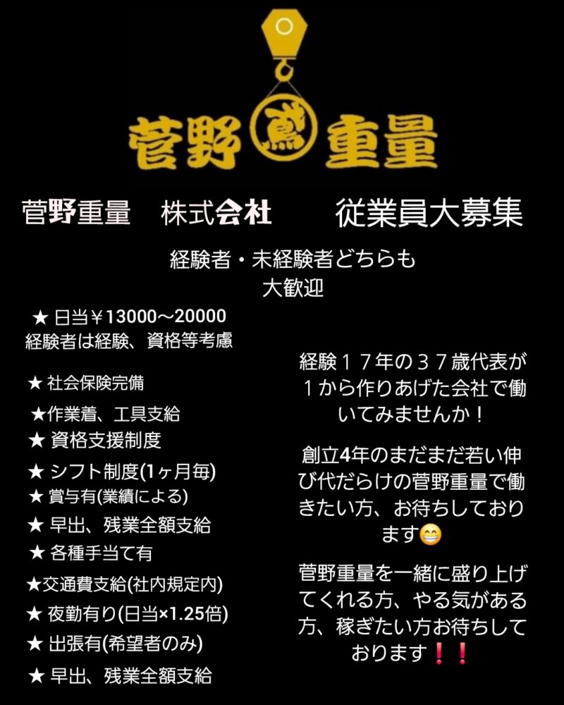 「重量鳶」正社員募集【菅野重量株式会社】